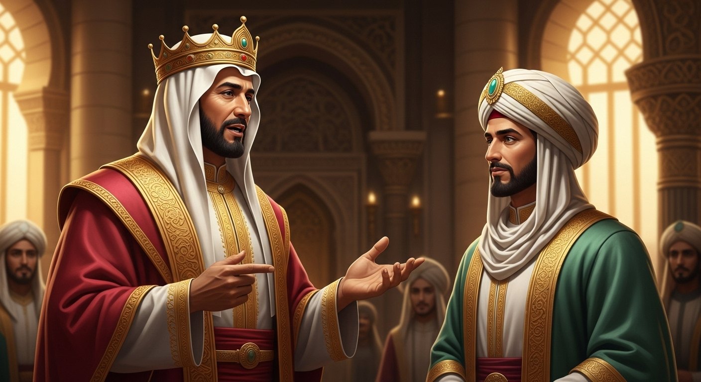 وفي أحد الأيام، بينما كان الملك يقطع الطعام بسكين حادة، جرح إصبعه جرحًا كبيرًا. فغضب الملك، لكن الوزير قال بهدوء: "لعلها خير".