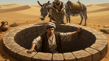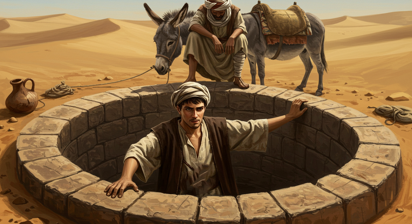يحكي انه كان هناك شاب يعيش مع والدته وكانت دائما توصيه بلا يثق في اي شخص ذي نيتين فقال لها كيف لي ان اعرف ان له نيتين يا امي قالت عندما تكون مع شخص ويأتي شخص اخر ويتحدث معه جيدا وعند فراقه يقول عنه ما ليس فيه هذا الشخص لا تثق فيه فربما يقول عنك ما ليس فيك وبعد فتره ماتت امه فحزن عليها كثيرا وبقي في البيت وحيدا يعاني مراره الفراق فقرر ان يبيع البيت ويرحل فاشترى بعيرا وسلاحا واخذ باقي المال وسافر وفي الطريق التقى برجل مصاب مكسور الساق يكاد يموت من العطش فنزل من على ظهر البعير واسقاه الماء وفك عمامته وربط ساق الرجل وحمله على البعير وسارا في الطريق واثناء رحلتهما اخذ يتجاذبان اطراف الحديث فسال الشاب ما الذي اصابك وكيف اتيت الى هنا فقال الرجل كنا في غزوه وانهزمنا واصبت في ساقي وهرب عني اصدقائي واثناء سيرهم التقوا برجل عجوز فاقترب منهم وكان يعرف الرجل مكسور الساق جيدا فساله ما الذي اصابك اتريد المساعدة فابتسم في وجهه وشكره وقال للشاب هذا الرجل من الاولياء الصالحين واذا اتى احد وطلب منه شيئا لن يكسر بخاطره ولما ذهب العجوز ظل الرجل يسبه ويلعن فيه فتذكر الشاب وصيه امه عندما قالت له لا تثق في احد ذو نيتين اخذ الرجل المكسور يسال الشاب عن حاله فاخبره بانه شاب مهاجر في ارض الله وقال امي كانت توصيني دائما الا اثق في احد ذو نيتان فقال الرجل انا ذو النيتين فضحك الشاب وسار معه حتى وصل الى بئر في الصحراء قال الرجل مكسور الساق دعني انزل واجلب الماء قال الشاب لا يا رجل انت مريض ومكسور الساق انا من سأنزل فقط اربط الحبل في عنق البعير وانزلني في البئر لأملأ القربة فترتوي انت اولا وفي الثانية لسقي البعير فنزل الشاب حتى وصل ركوه البئر فقطع ذو النيتين الحبل وسقط الشاب في قعر البئر فنادى الشاب يا فلان الحبل رد الرجل انا اخبرتك من البداية ان لي نيتين فقال الشاب خذ البعير والسلاح والمال لكن اخرجني من البئر قال الرجل لتقتلني قال اعطيك عهد الله ان لا اقتلك قال لا ومشى ذو النيتين تاركا الشاب في قاع البئر وهو يتذكر مقوله امه ان لا يعاشر ذوي النيتين فلما حل الظلام وانتصف الليل حط غرابان اسودان على طرف البئر يتحدثان مع بعضهما فقال الغراب الاول هل تعرف ابنه الشيخ فلان قال الغراب الثاني نعم قال اتذكر تلك البنت الجميلة التي تقدم لخطبتها الالاف من خيره الرجال ورفضتهم قال اذكر اني سمعت هذا قال عملت لها سحرا عظيما فأصبحت كالمجنونة تقطع ثيابها وتصيح طول الوقت ولم يتقدم لخطبتها احد حتى اليوم وفك هذا السحر بسيط يقرؤون الفاتحة سبع مرات في ماء ويسقونه للبنت فتشفى بإذن الله قال الغراب الثاني انت لم تصنع شيئا يا صديقي هل تذكر مدينه الشيخ حرب المشهورة بالخضرة والمزارع والماء صنعت لها سحرا عظيما فجف ماء الابار وهي الان خاويه على عروشها لا يسكنها احد واغلقت الماء بمجمع العيون في البئر الذي يقع تحت الجبل ومنه تنبع كل العيون فاصبح جافا قاحلا وفك السحر جدا بسيط يقرؤون خواتيم سوره البقرة والمعوذتين في ماء ويصبونه على منبع الماء فينفك السحر ويعود الماء يتدفق من جديد وكان الشاب في اسفل البئر يسمع حوارهما وهي اشاره على ان الجن لا يعلمون الغيب طلع الصباح فطارت الطيور ومرت قافله بالبئر فانزلوا دلوهم بالبئر فاخذ الشاب الدلو فقطعه قالوا ربما جيلان البئر قطعت الحبل فأنزلوا الدلو الثاني فقطعه والثالث فقطعه قال كبير القافلة والله ان البئر فيها بلاء غريب من ينزل ليأتينا بالخبر اليقين فتشجع احدهم ونزل فلما اقترب من ركوه البئر فإذا بالشاب يستغيث فقال له الرجل من انت بالله أأنت من الجن ام الإنس فقال يا اخي انا إنسي وقصتي كذا وكذا فقال لماذا قطعت الدلو قال الشاب لو تعلقت بالدلو ورأيتموني لخفتم مني وتركتم الحبل وهربتم فاسقط واموت دعوني اسقي لكم الماء وساعدوني على الخروج منه فخرج الشاب وقص عليهم قصته قالوا الى اين انت ذاهب؟ قال الى مدينه الشيخ حرب ومدينه البنت المسحورة فقالوا اننا في طريقنا اليها كن بصحبتنا فلما وصلوا كان من يس